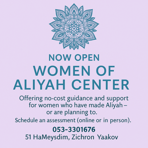 We’d love to hear from you. The Women of Aliyah Center is here to support women who have made Aliyah — or are planning to. Whether you’re looking for guidance, want to join our online group, or simply need someone to talk to, we’re here.
